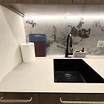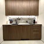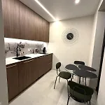 - ❓В этой квартире оборудована кухня?Да, в этой квартире есть кухня, в которой предусмотрели микроволновую печь и холодильник.